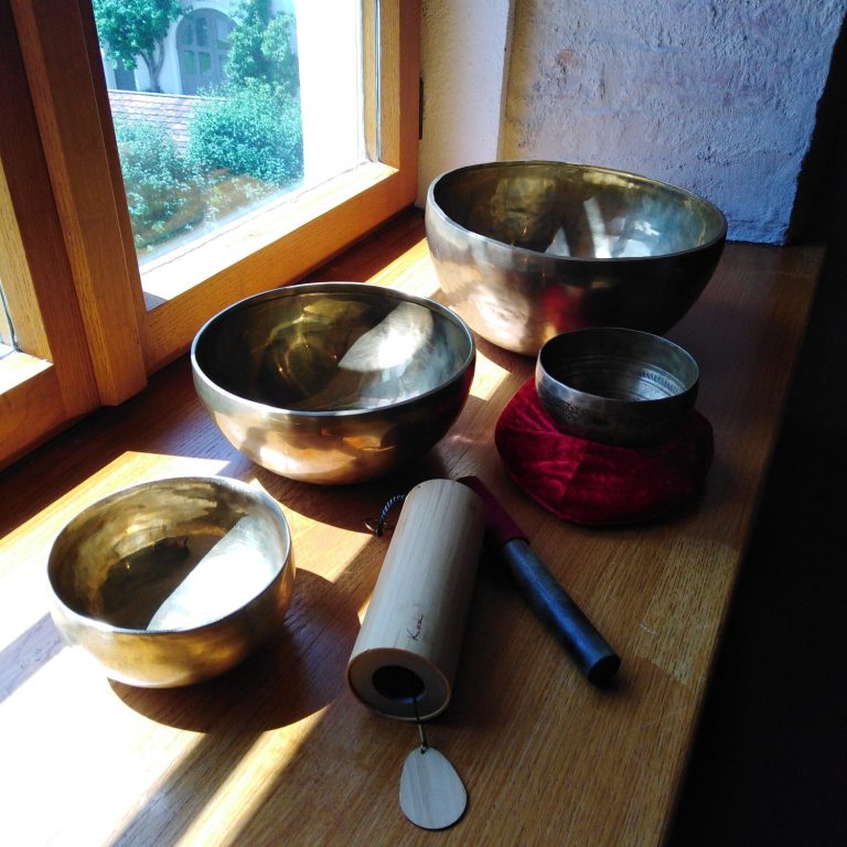 Erleben Sie die beruhigende Wirkung der Klangschalen, die Körper und Geist in Einklang bringen.